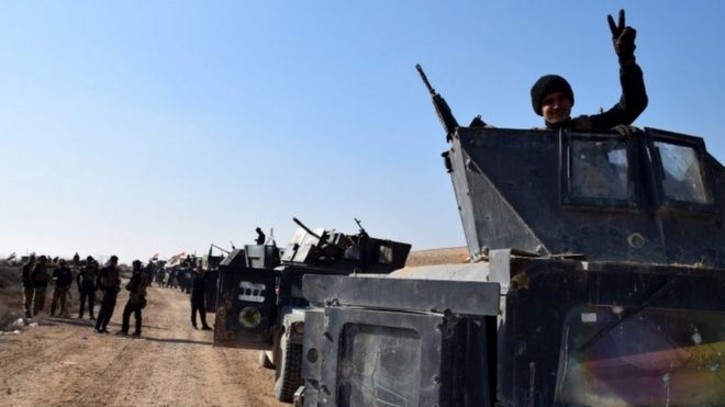 Iraqi forces are heading towards the main government complex, and have come up against snipers and suicide bombers.